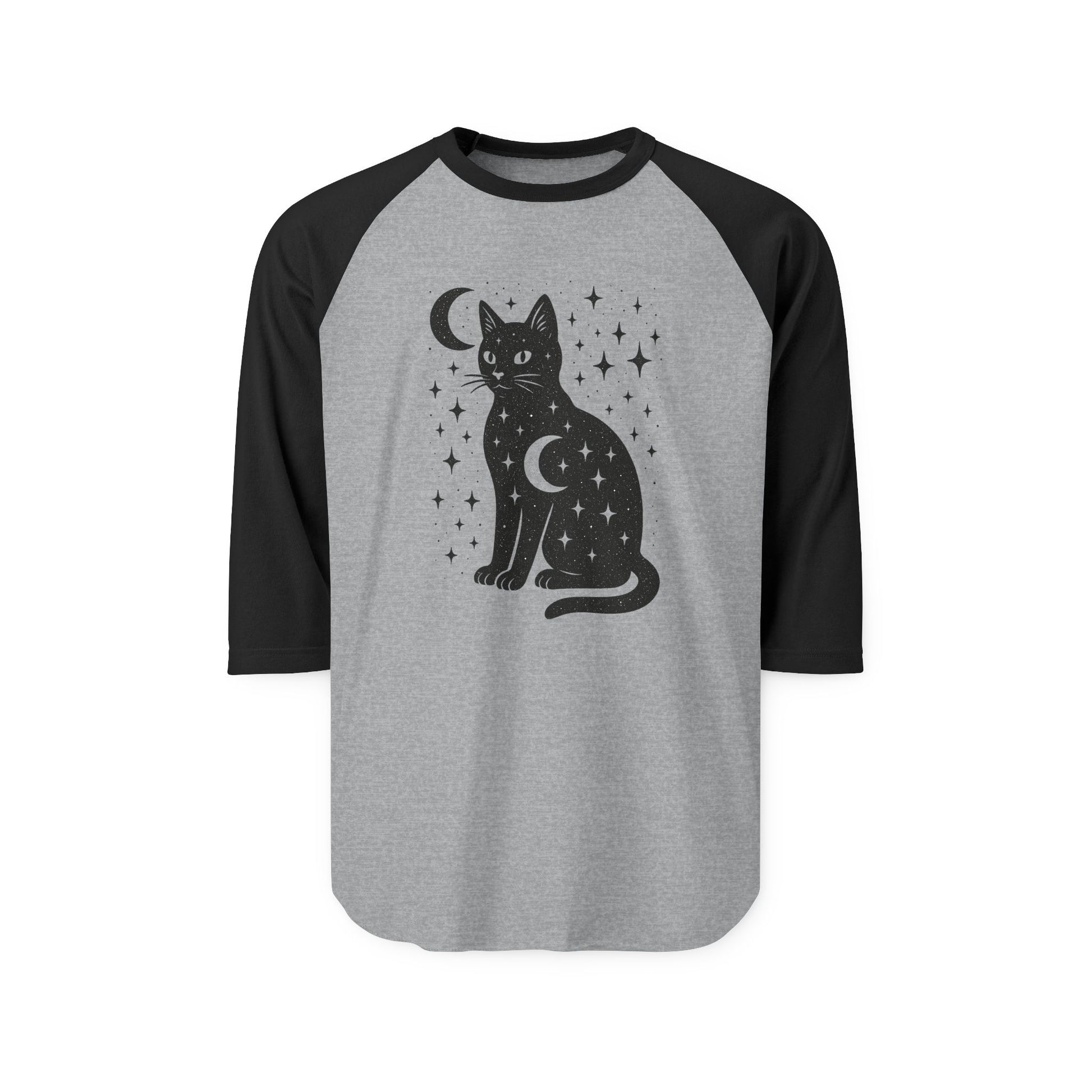 This celestial cat raglan shirt exudes a mystical and whimsical vibe, perfect for cat lovers and fans of celestial themes. Ideal for casual wear or as a unique gift for someone special. Relevant for cat lovers, celestial enthusiasts, and those looking for a unique wardrobe piece for casual occasions or relaxed events.