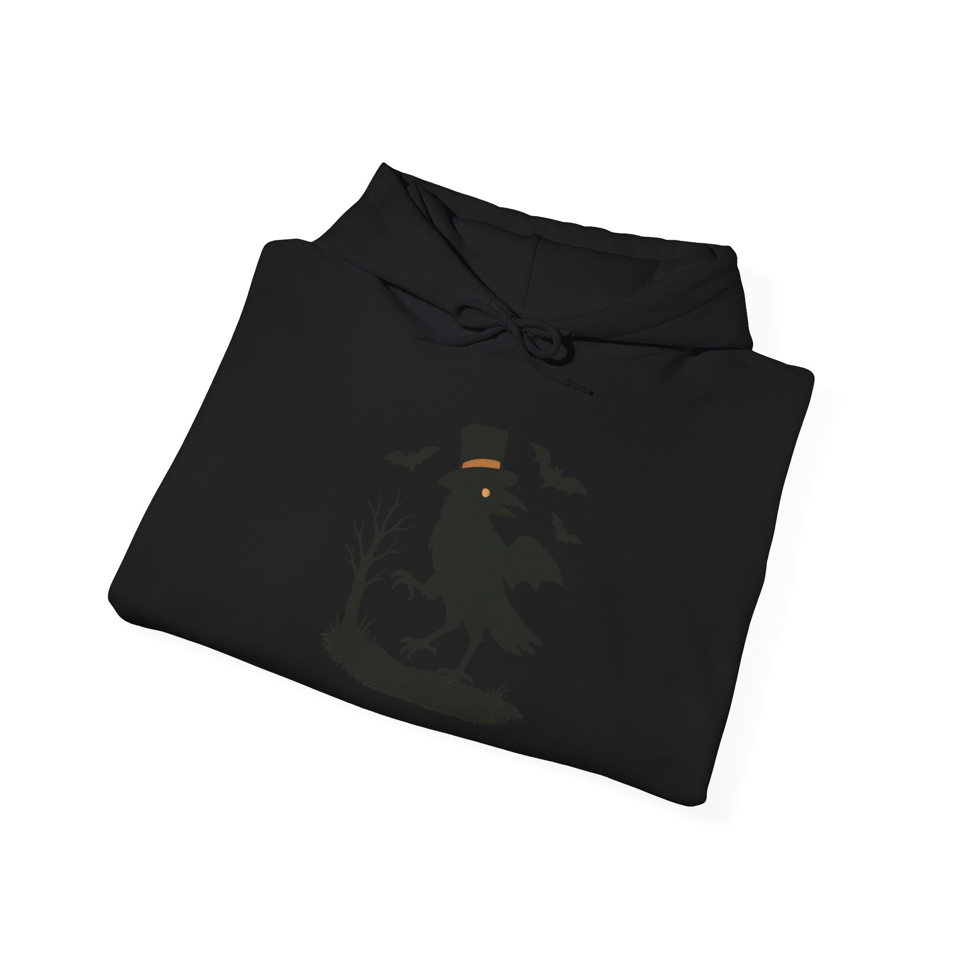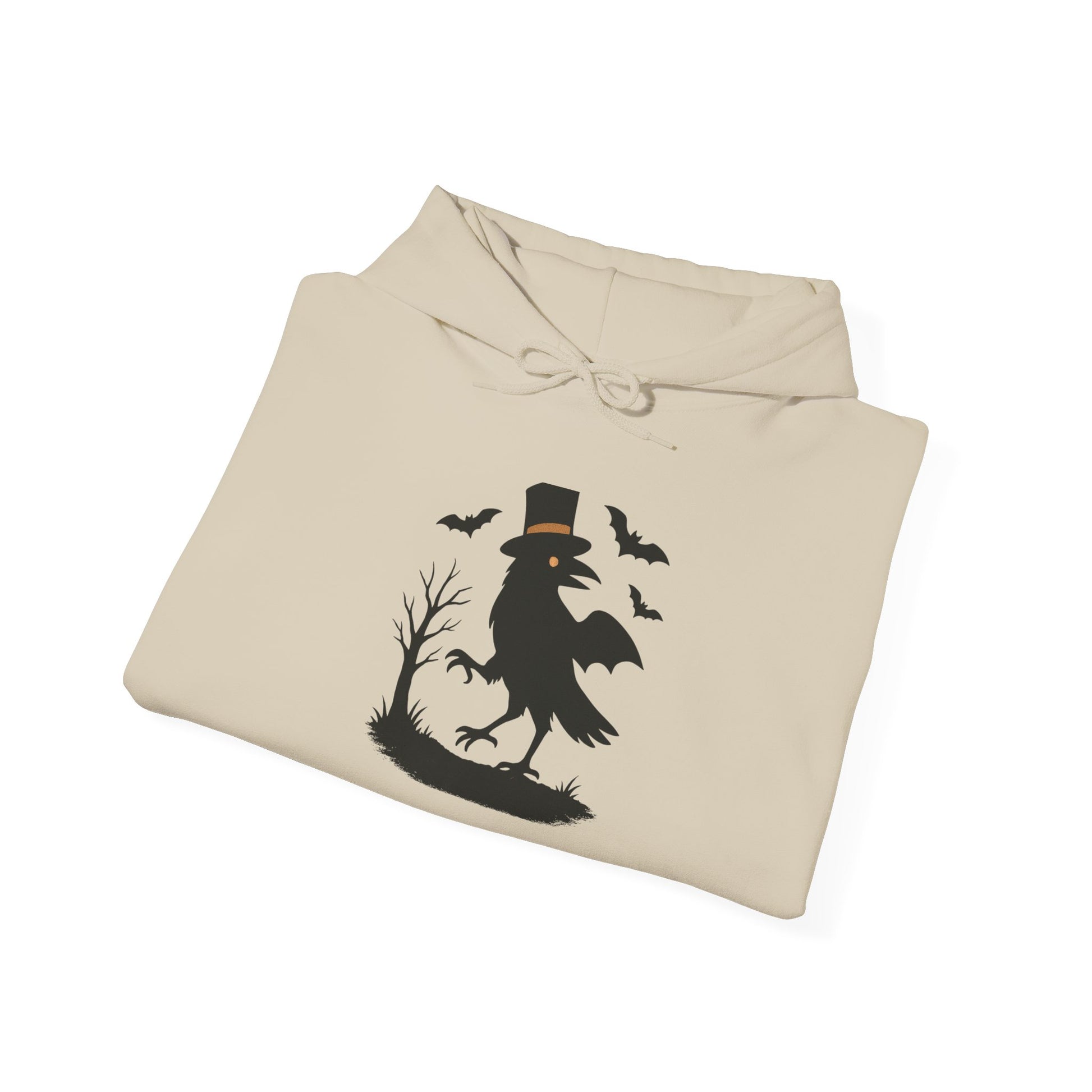 A cozy and stylish hoodie featuring a design of a crow with a top hat, perfect for those who love unique and quirky apparel. This hoodie is perfect for casual outings, lounging at home, or even as a statement piece during holidays and celebrations.