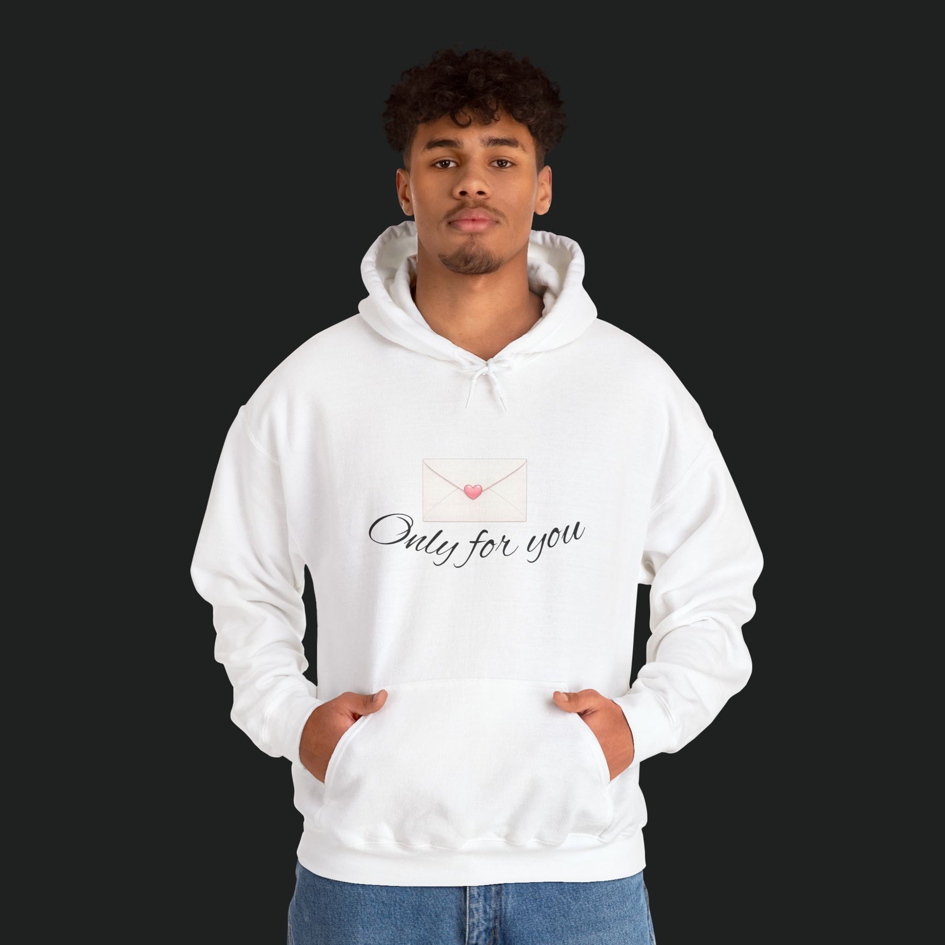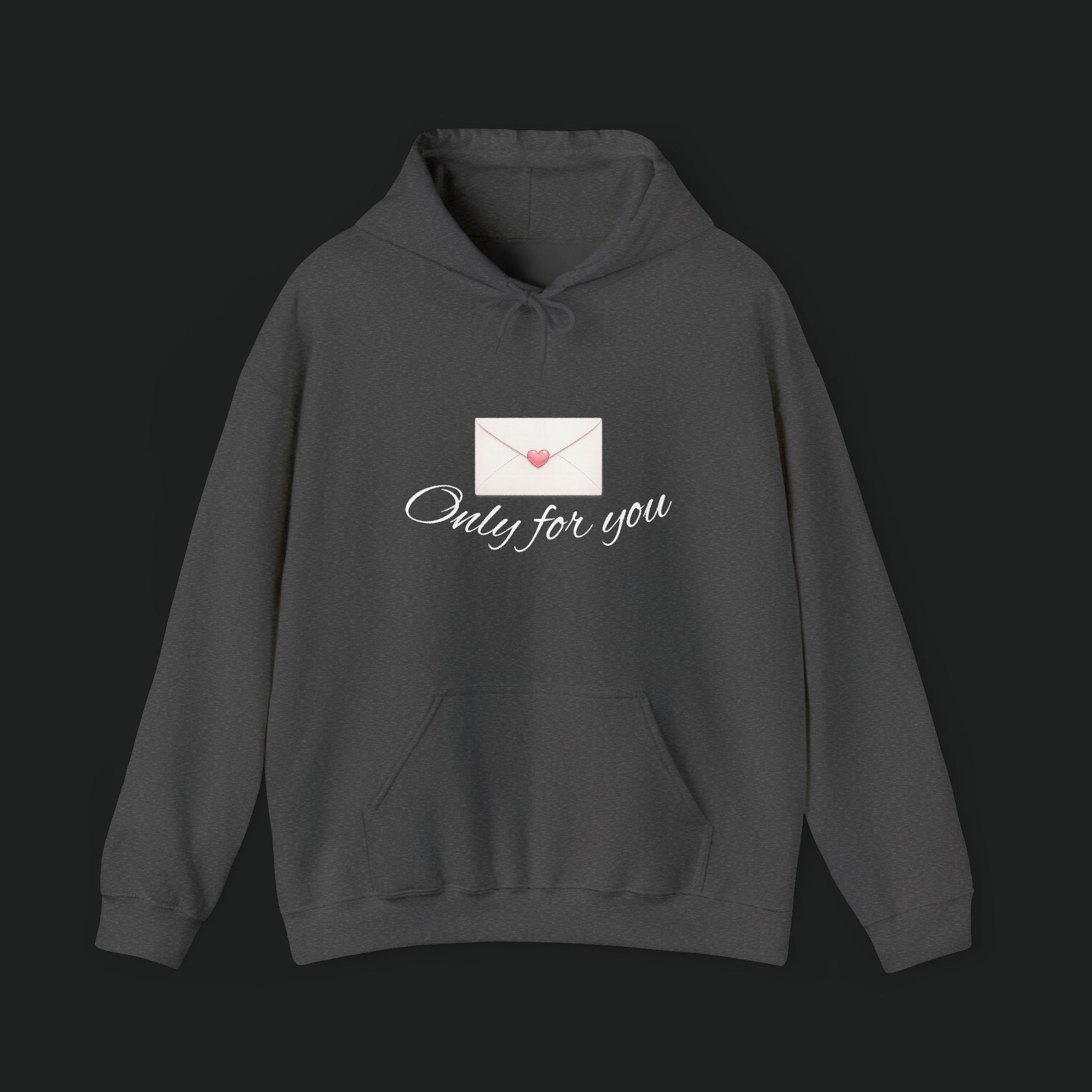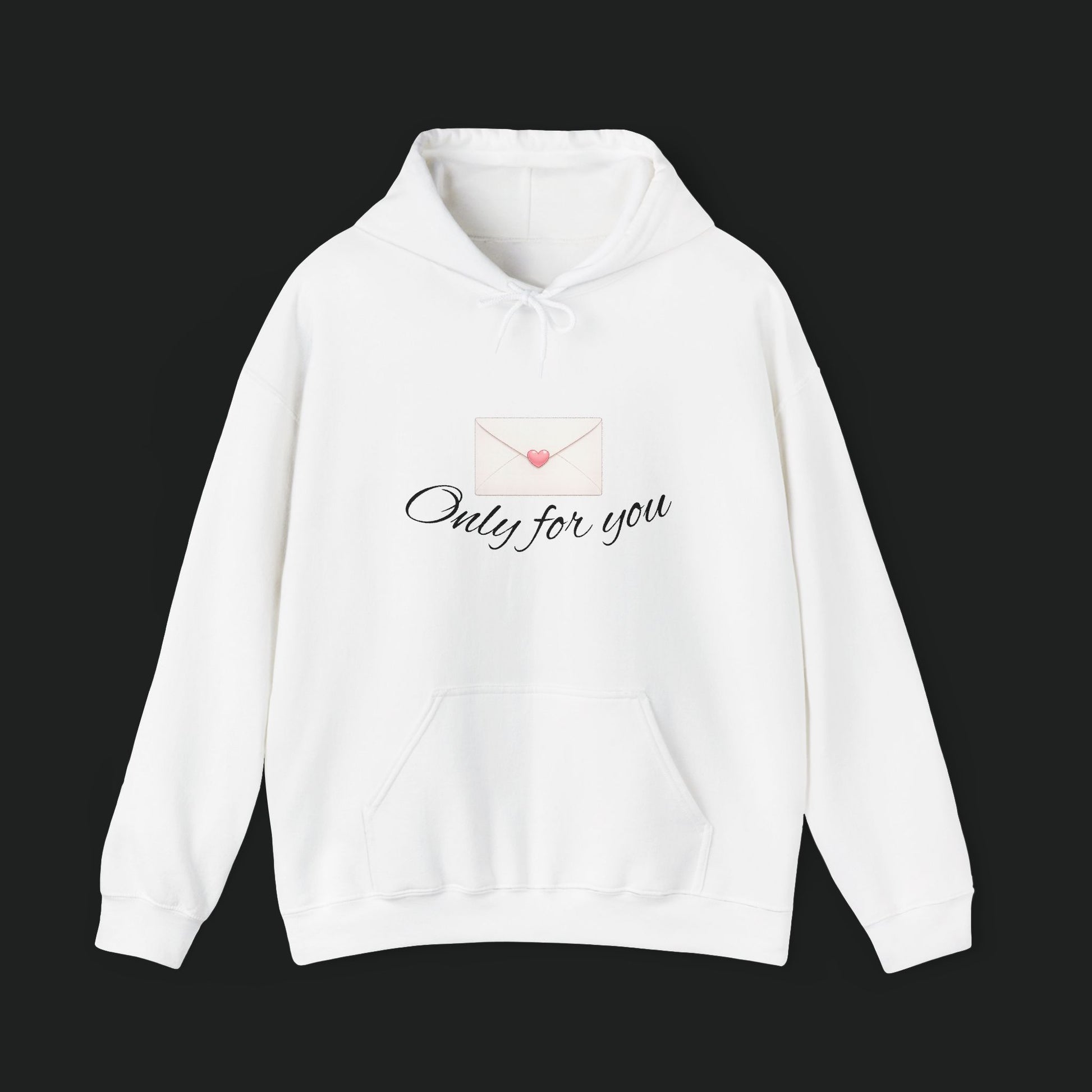 A soft, cozy hoodie that speaks like a handwritten note. Lightweight yet warm, it wears in gently and keeps the message front and center: a small, heart-sealed envelope above flowing script that reads “Only for you.” The roomy kangaroo pocket and double-lined hood make it a comfortable layer for slow mornings, coffee shop visits, and quiet walks. Subtle enough to pair with jeans or leggings, it carries a feeling — intimate, gentle, and quietly thoughtful — for anyone who wants to wear a small act of care.