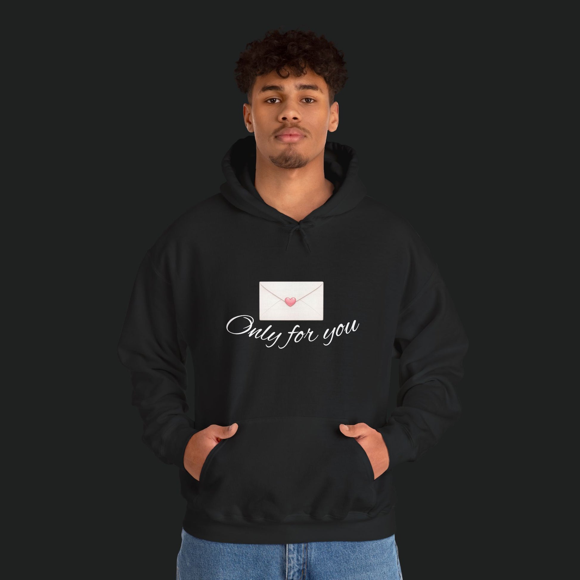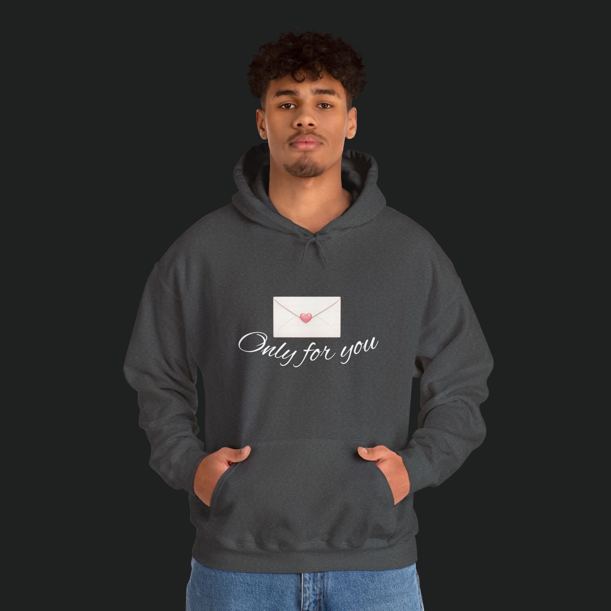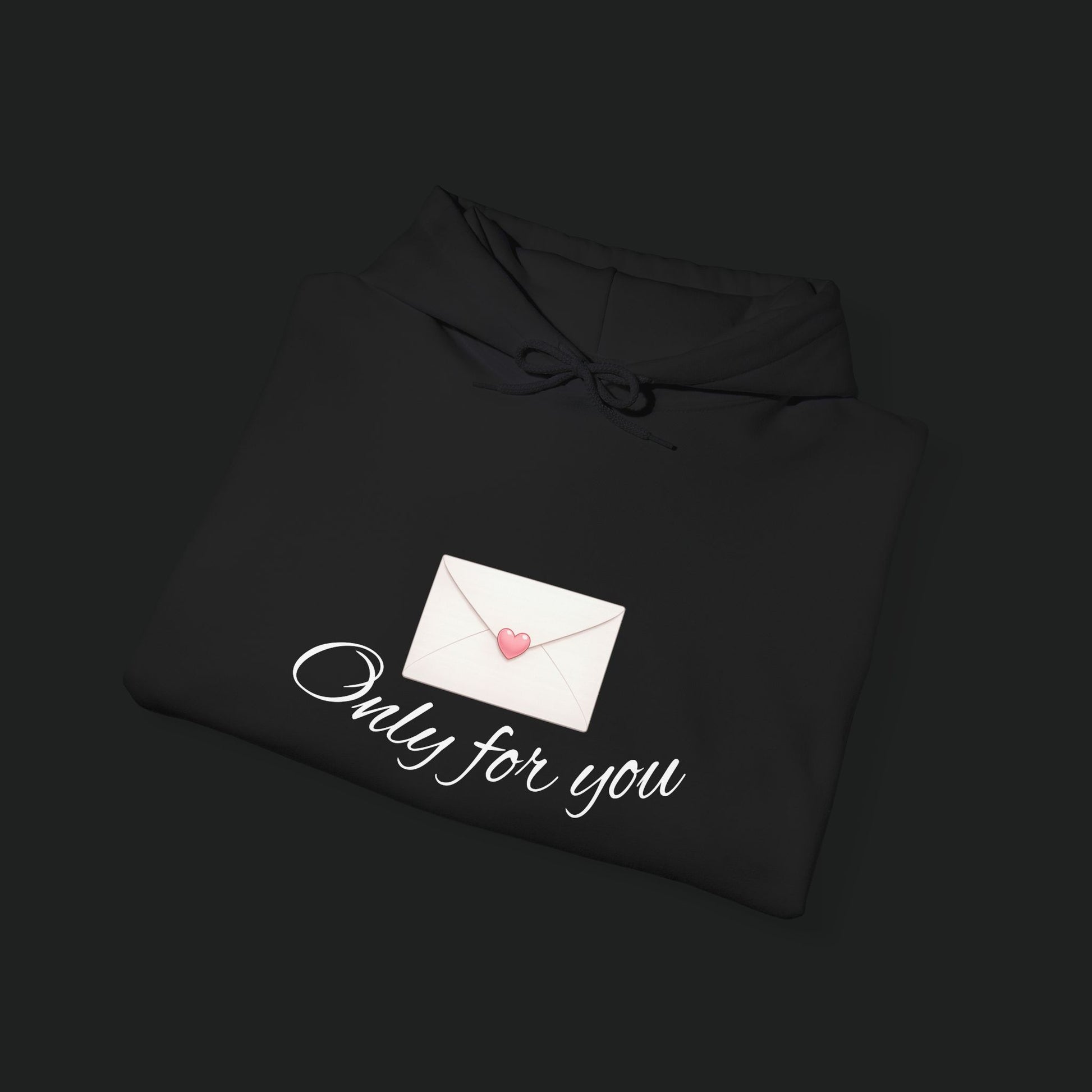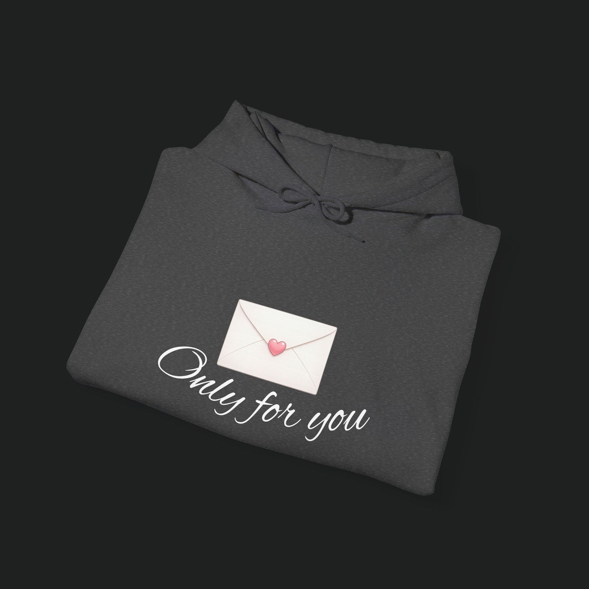 A soft, cozy hoodie that speaks like a handwritten note. Lightweight yet warm, it wears in gently and keeps the message front and center: a small, heart-sealed envelope above flowing script that reads “Only for you.” The roomy kangaroo pocket and double-lined hood make it a comfortable layer for slow mornings, coffee shop visits, and quiet walks. Subtle enough to pair with jeans or leggings, it carries a feeling — intimate, gentle, and quietly thoughtful — for anyone who wants to wear a small act of care.